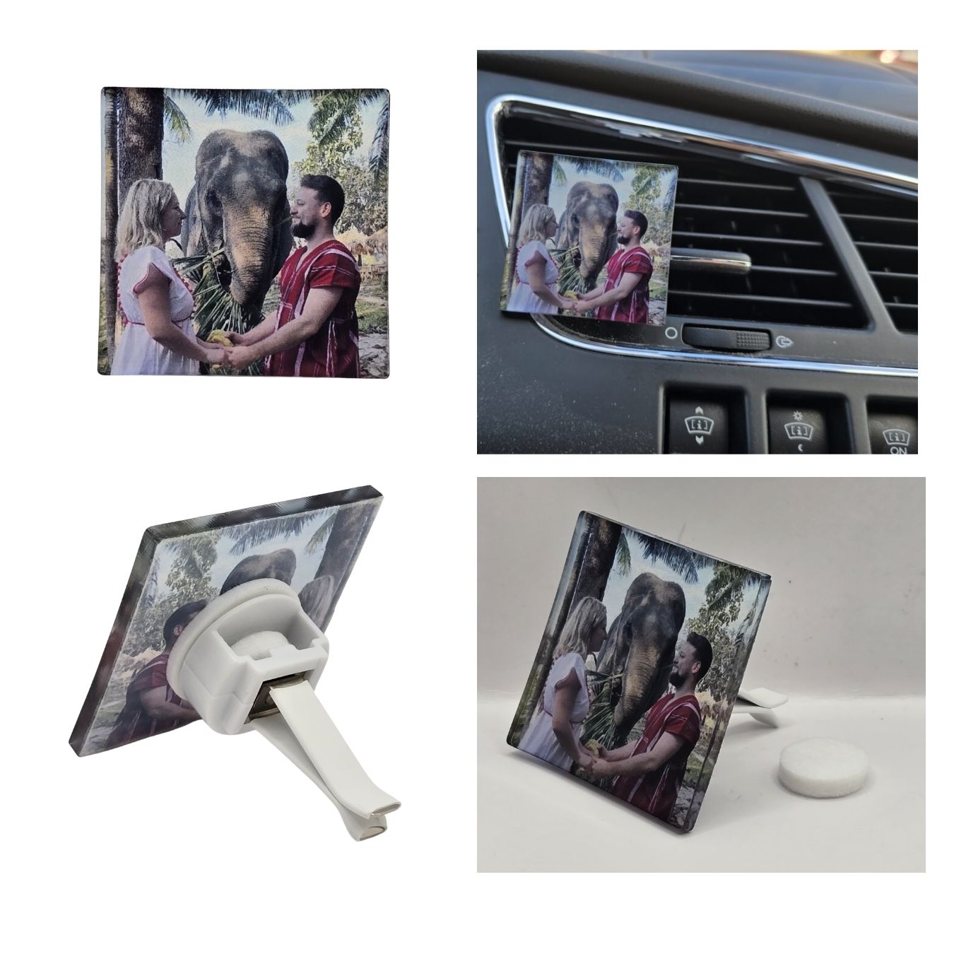 Le clip est fourni avec 2 tampons neutres sans parfum. Il suffit de déposer quelques gouttes de parfum sur le tampon, puis de le placer à l’arrière de l’image.